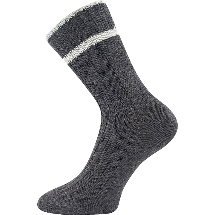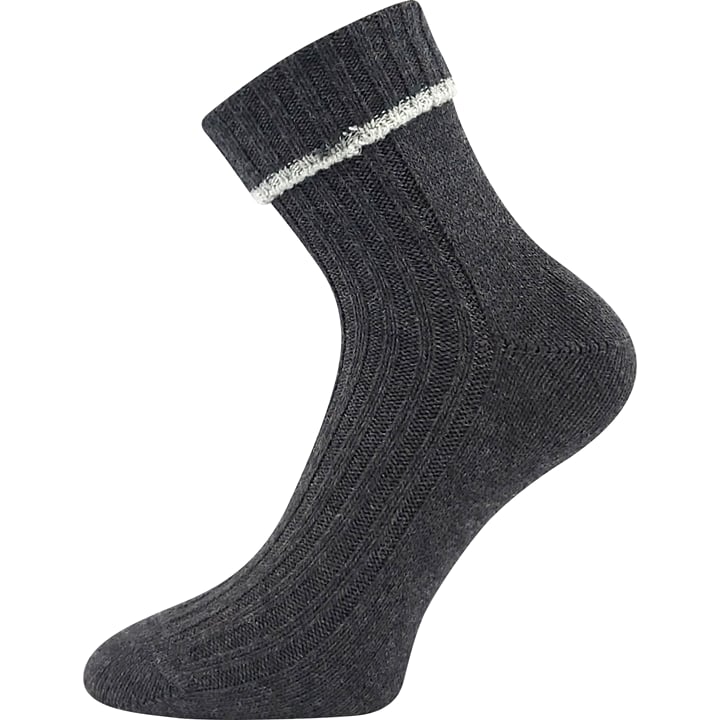 Dámské ponožky VoXX CIVETTA jsou dámské silné ponožky upletené z materiálů hřejivá merino vlna a luxusní kašmír. Díky těmto materiálům jsou tyto ponožky velmi hebké, jemné, měkké a na omak velmi příjemné. Žebrovaný úplet je pohodlný a volný lem nohu nepříjemně nestahuje. Ponožky VoXX můžete nosit natažené nebo si je můžete ozdobně ohrnout. Teplotní třída je C, bez obav je můžete nosit v rozmezí od -20°C do +5°C.