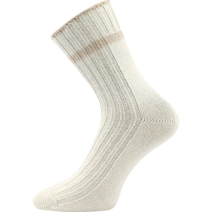 Dámské ponožky VoXX CIVETTA jsou dámské silné ponožky upletené z materiálů hřejivá merino vlna a luxusní kašmír. Díky těmto materiálům jsou tyto ponožky velmi hebké, jemné, měkké a na omak velmi příjemné. Žebrovaný úplet je pohodlný a volný lem nohu nepříjemně nestahuje. Ponožky VoXX můžete nosit natažené nebo si je můžete ozdobně ohrnout. Teplotní třída je C, bez obav je můžete nosit v rozmezí od -20°C do +5°C.