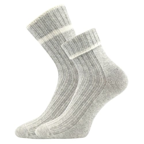 VoXX CIVETTA jsou dámské silné ponožky upletené z materiálů hřejivá merino vlna a luxusní kašmír. Díky těmto materiálům jsou tyto ponožky velmi hebké, jemné, měkké a na omak velmi příjemné. Žebrovaný úplet je pohodlný a volný lem nohu nepříjemně nestahuje. Ponožky VoXX můžete nosit natažené nebo si je můžete ozdobně ohrnout. Teplotní třída je C, bez obav je můžete nosit v rozmezí od -20°C do +5°C.