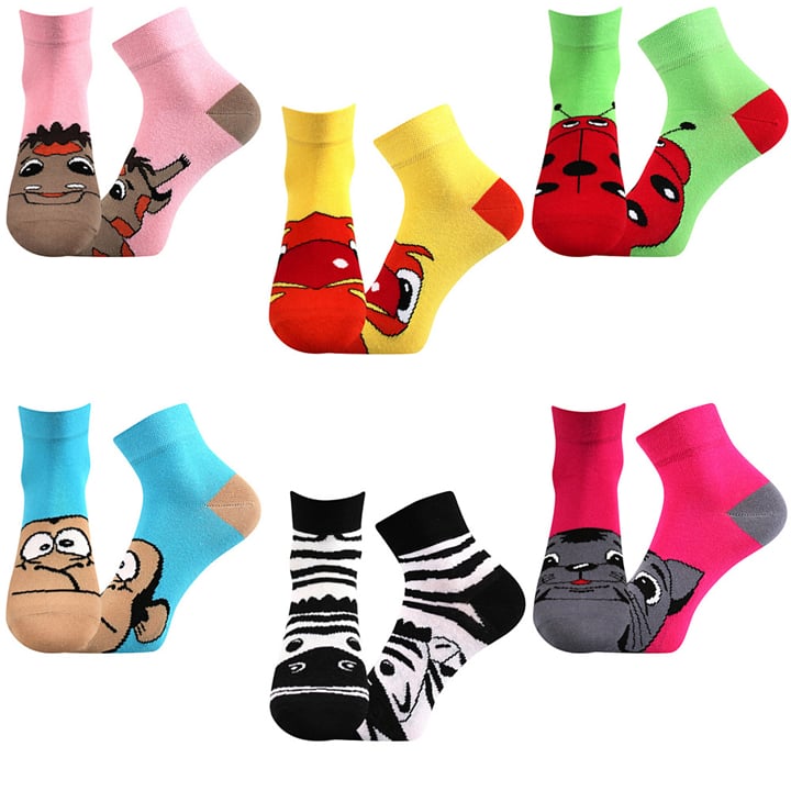 Ponožky JITULKA jsou dámské vtipné a veselé ponožky na každý den. Barevné ponožky se zvířecími motivy, mají výšku nad kotník. Jakmile si zujete boty, na svět vykouknou beruška, opička nebo zebra a další zvířátka. K dostání ve výhodném balení 3 párů. Bavlněné krátké ponožky si hned zamilujete.