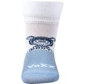 Ponožky kojenecké VoXX SEBÍK jsou kojenecké bambusové ponožky s obrázkem medvídka. Použitý materiál bambus (bambusová viskóza) je přírodní materiál s úžasnými vlastnostmi. Má antialergické vlastnosti, výborně saje vlhkost, sám o sobě je antibakteriální a krásně se leskne. Lem ponožky je velmi jemný, nikde nestahuje a nezařezává se do pokožky. Ponožky pro nejmenší nabízíme v balení 3 párů, mix kombinací barev pro holčičky a chlapečky.