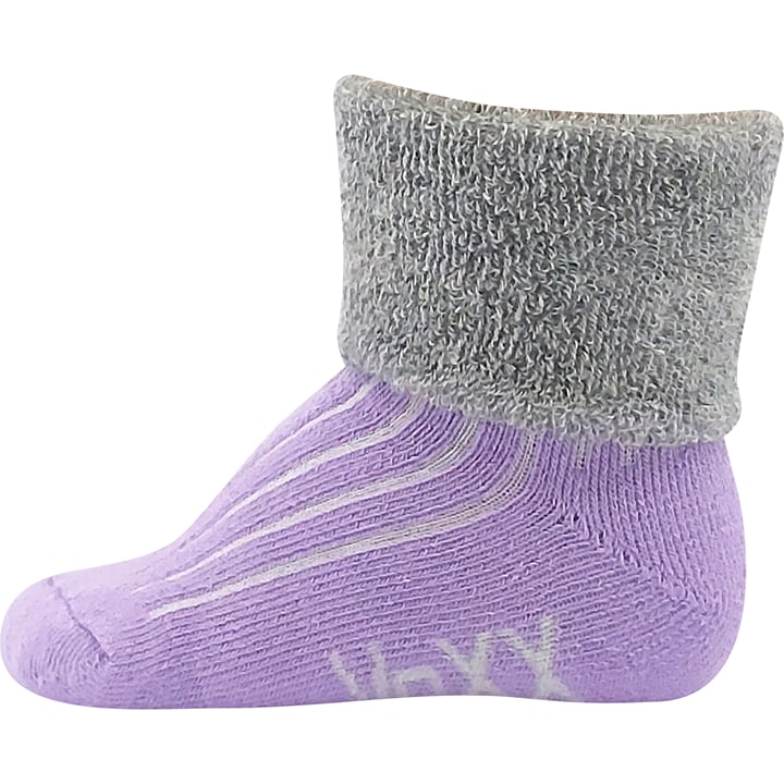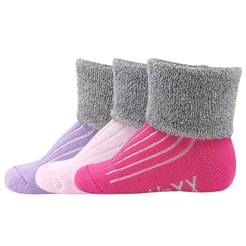 Ponožky kojenecké VoXX LUNIK jsou kojenecké froté teplé barevné ponožky pro nejmenší. Mají ohrnovací lem v odlišné barvě, který můžete přehnout nebo nechat natažené. Protože jsou ponožky vyšší, miminku nebudou klouzat z nožičky dolů. Ve výhodné sadě jsou 3 páry v mixu barev pro kluky i holky. Prodyšné ponožky z bavlny jsou v teplotní třídě B.