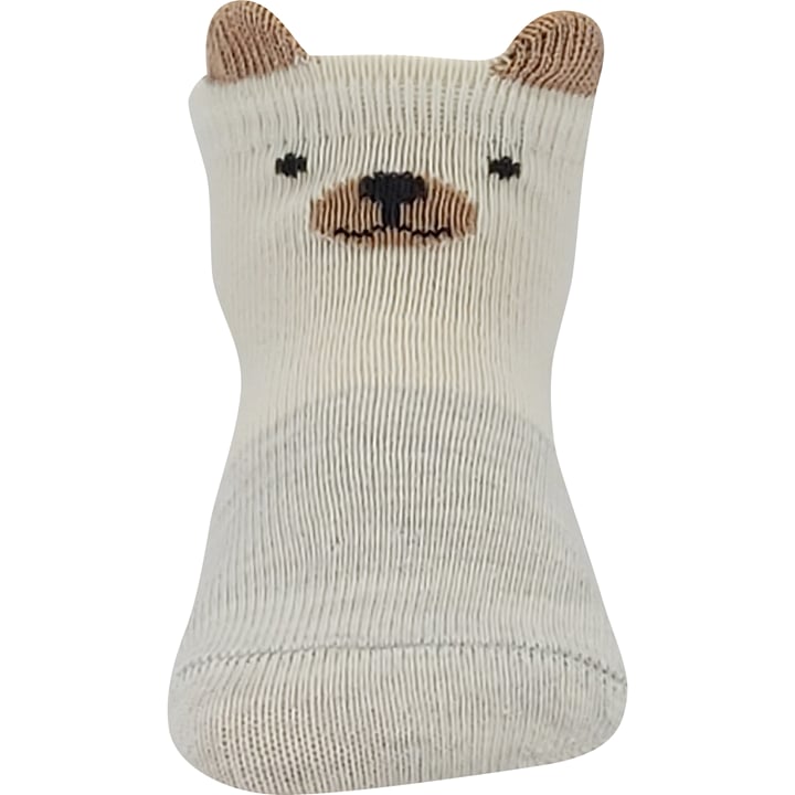 Kojenecké ponožky MÍŠÁNEK ABS jsou kojenecké roztomilé malé ponožky s obrázkem medvídka pro malá miminka. Medvídek má v lemu tvarovaná 3D ouška. Pro naše nejmenší jsou ponožky upletené z bavlněné příze s podílem elastanu, takže jsou příjemné na pokožce ale zároveň jsou pružné a dobře si drží tvar. Aby ponožky netlačili, mají pro maximální pohodlí špičku spojenou jemným řetízkováním. Chodidlo mají opatřené protiskluzovými ABS puntíky.