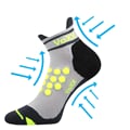 Kompresní ponožky SPRINTER jsou kompresní dámské a pánské sportovní ponožky s vyvzorovanou patou, která napomáhá pevnějšímu držení a vyšší stabilitě kotníku, se speciální konstrukcí proti posunu v botě, anatomicky tvarované a polstrované zóny chrání nohu proti otlakům a puchýřům, antibakteriální ochrana ionty stříbra v materiálu silproX.