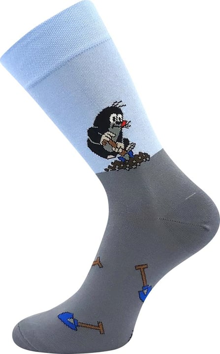 Ponožky KR 111 jsou dámské i pánské slabé ponožky s roztomilým obrázkem Krtka od malíře Zdeňka Milera. Vraťte se do říše pohádek a pořiďte si Krtečka do svého šatníku. Klasické ponožky s vysokým podílem bavlny oživí váš outfit, ať už nosíte oblek nebo džíny. K dostání ve výhodném balení 3 párů ponožek. Lepší mít Krtka na ponožkách než v trávníku!