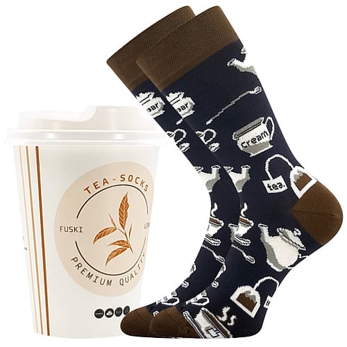 Ponožky Lonka TEA socks jsou dámské i pánské originální ponožky, které jsou díky vysokému podílu česané bavlny příjemné na omak, přátelské k pokožce a dobře pohlcují vlhkost. Klasické ponožky mají řetízkovanou špici, která nikde netlačí, zabraňuje tvorbě puchýřů a zajišťuje tak pohodlí a komfort při nošení. Pique lem je jemný, nohu nestahuje a neškrtí. Dámské a pánské ponožky s motivem ČAJ najdete vtipně zabalené v originálním nápojovém kelímku. Balení obsahuje 1 pár.