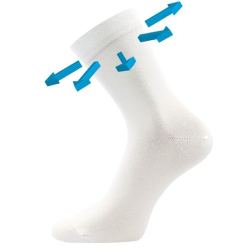 Ponožky Lonka DRBAMBIK jsou dámské i pánské kvalitní, tenké a jednobarevné ponožky. 200 jehlový úplet je velmi jemný a hladký. Ponožky mají špici uzavřenou řetízkováním, takže nikde netlačí a pomáhá zamezit vzniku otlaků nebo puchýřů. Lem ponožky má velmi jemný, nikde nestahuje a nezařezává se do pokožky, ponožky jsou vhodné i pro oteklé nohy. Klasické vysoké ponožky z bambusu jsou přirozeně antibakteriální, napomáhají k ničení bakterií způsobující zápach. Bez obav je můžete nosit po celý den.