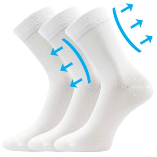 Ponožky Lonka DRMEDIK jsou dámské i pánské kvalitní, tenké a jednobarevné ponožky. 200 jehlový úplet je velmi jemný a hladký. Ponožky mají špici uzavřenou řetízkováním, takže nikde netlačí a pomáhá zamezit vzniku otlaků nebo puchýřů. Lem ponožky má velmi jemný, nikde nestahuje a nezařezává se do pokožky, ponožky jsou vhodné i pro oteklé nohy. Klasické ponožky jsou z vysoce kvalitní česané bavlněné příze s podílem elastanu, dobře odvádí vlhkost, je příjemná na pokožce a perfektně sedí na noze. Bez obav je můžete nosit po celý den.
