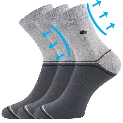 Pánské ponožky LONKA ROGER 01 jsou pánské ponožky, mají volný a nestahující pique lem, který nepříjemně neškrtí a můžou je nosit i muži se silnějšími nebo oteklými končetinami. Jednobarevné ponožky ve střední výšce užijete po celý den, jsou díky vysokému podílu bavlny velmi pohodlné. Slabé ponožky jsou velmi příjemné na dotyk a umí dobře pohlcovat vlhkost. Díky uzavření špice řetízkováním ponožky nikde netlačí a nevznikají tak otlaky ani puchýře. 200 jehlový úplet je velmi jemný a hladký, kvalitní ponožky mají navíc vypletený decentní vzorek.