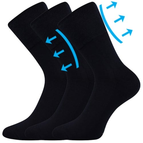 Zdravotní ponožk FINEGO jsou dámské i pánské speciální froté ponožky na potíže s oteklými nohami. Ponožky mají speciální prodloužený extra volný lem, který neškrtí silné nebo oteklé nohy, což ocení hlavně diabetici a osoby s problémy oběhového systému. Zesílené froté mají ponožky na chodidle, nárt a horní část ponožky je slabá. Vysoký podíl bavlny je velmi příjemný na omak a výborně saje pot.