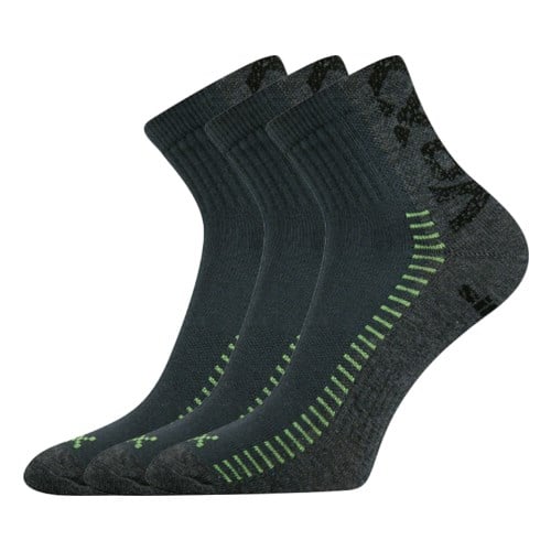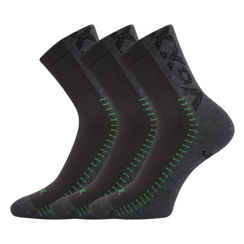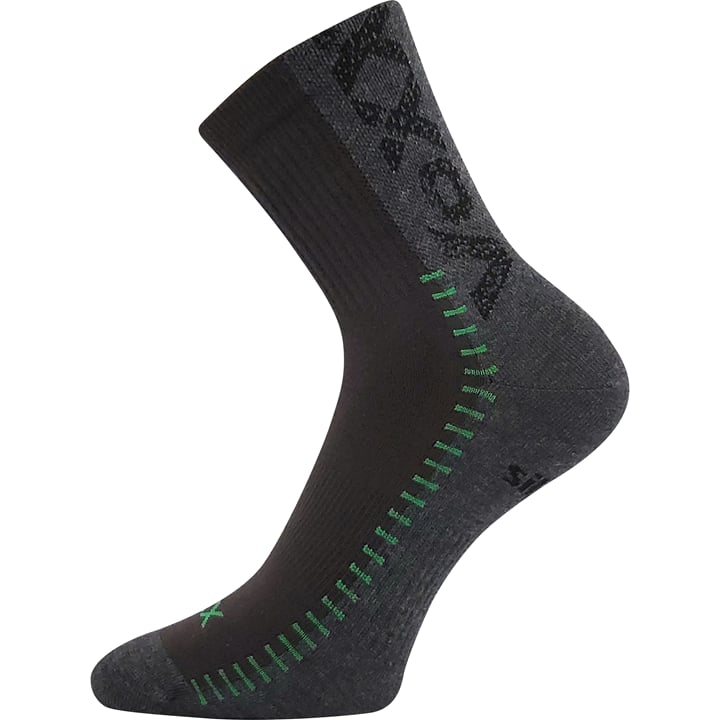Ponožky VoXX REVOLT jsou pánské a dámské ponožky ve sportovním designu, které můžete nosit po celý den. Bavlněné ponožky jsou pohodlné, volný lem nohu nestahuje. Díky materiálu silproX® s ionty stříbra, které působí antibakteriálně, je značně omezena tvorba bakterií a plísní. Bakterie jsou stříbrem přirozeně zničeny a nedochází pak k tvorbě zápachu. Ponožky v teplotní třídě A jsou vhodné do rozmezí teplot od +10°C do +35°C a dostupné jsou i v nadměrné velikosti.