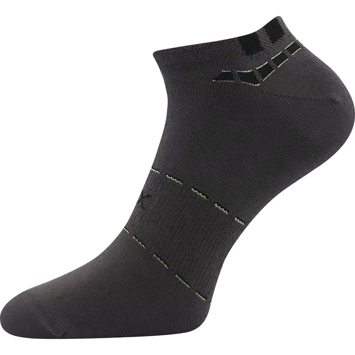 Pánské ponožky VoXX REX 16 jsou sportovní, nízké ponožky, které se hodí jak na celodenní nošení, tak i na letní indoorové a outdoorové aktivity. Tenké ponožky s vyšším podílem bavlny pro dobrý odvod vlhkosti mají navíc prodyšnou zónu na nártu a jemný nestahující lem. Aby se v obuvi nepřetáčely, okolo nártu mají elastickou zónu, držící ponožky na svém místě. Ponožky jsou dostupné v teplotní třídě A, vhodné do rozmezí teplot od +10°C do +35°C.