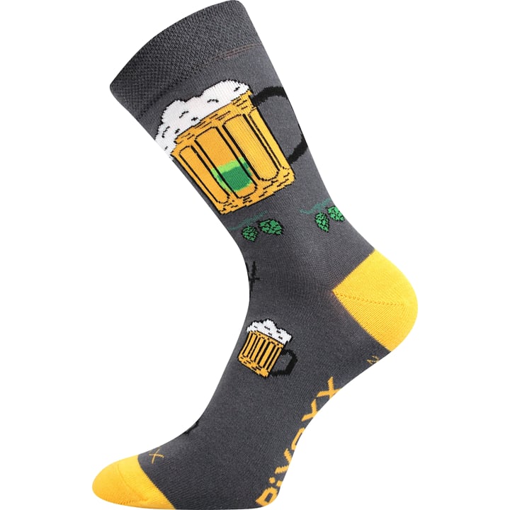 Ponožky VoXX PIVOXX jsou pánské slabé ponožky pro všechny správné pivaře. Bavlněné ponožky s elastanem jsou prodyšné a pohodlné po celý den i večer. Navíc mají ochranu ionty stříbra v materiálu silproX®, které působí antibakteriálně a nedochází tak k tvorbě zápachu. Pro milovníky tohoto hořkého nápoje máme hned 3 páry v balení, s motivy chmele a půllitrů s tímto zlatavým mokem. Tenké ponožky jsou vhodné na celodenní nošení, ideálně do letních zahrádek, restaurací a hospůdek, kde budete za tento módní doplněk po zásluze pochváleni. V teplotní třídě A jsou ponožky dostupné v nadměrné velikosti.