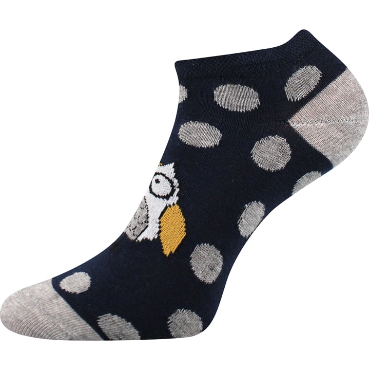 Ponožky PIKI 62 jsou dámské nízké slabé ponožky z přírodní bavlny doplněné o pružný elastan. Jsou příjemné na nošení a výborně sedí na noze. Výhodné balení letních ponožek s veselými puntíky doplněné o obrázek roztomilé sovičky obsahuje 3 páry.
