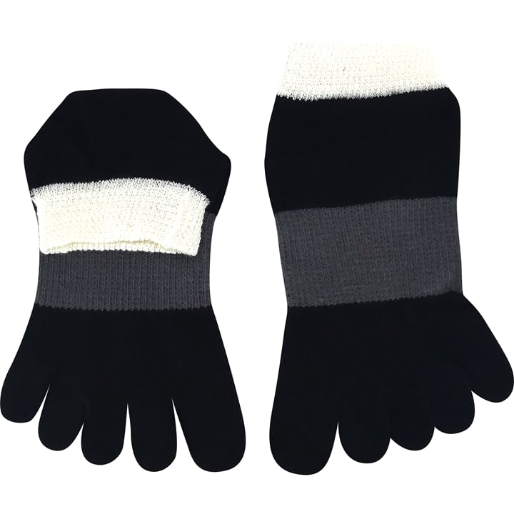 Prstové ponožky PRSTAN-A 11 jsou dámské i pánské speciální krátké ponožky, které oblékají a chrání i prsty na noze. Ponožky v černé barvě mají barevný lem. Hladké ponožky mají vysoký podíl přírodní bavlny, díky které jsou jemné na omak a dobře pohlcují vlhkost. Prstové ponožky jsou nízké a hodí se nejen do barefootové ale i fivefingers obuvi.