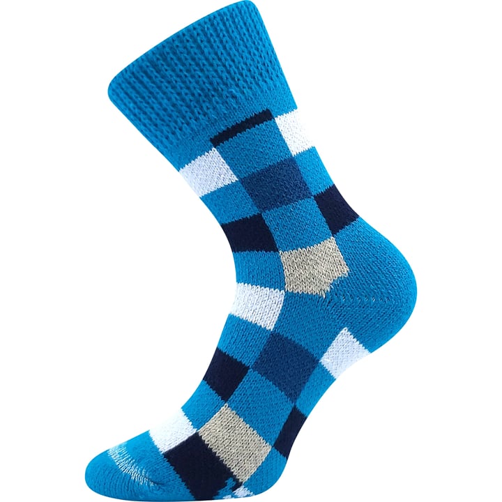 Spací ponožky - KOSTKY jsou dámské i pánské velmi silné ponožky v kostkovaném designu určené přímo na spaní. Silný úplet je velmi jemný a příjemný, ponožky jsou tak maximálně hřejivé, a to i díky podílu ovčí vlny. Extra jemný neškrtící lem podporuje dobré prokrvení nohou. Teplé nohy znamenají klidnější a kvalitnější spánek. Barevné kostkované ponožky můžou nosit dámy i pánové také na doma, klidně při lenošení na pohovce nebo při sledování televize.