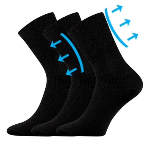 Zdravotní ponožky jsou dámské i pánské ponožky, které jsou ideální volbou pro oteklé nohy, vhodné i pro diabetiky. Vyšší ponožky z žebrovaného úpletu mají vyšší, speciální, extra volný a nestahující lem, zamezující otlakům a zaškrcení průtoku krve v končetinách. Bavlněné ponožky jsou příjemné na omak i nošení, výborně pohlcují vlhkost a perfektně sedí na noze. Bez obav je můžete nosit po celý den. Dostupné i v nadměrné velikosti.