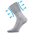 Zdravotní ponožky jsou dámské i pánské ponožky, které jsou ideální volbou pro oteklé nohy, vhodné i pro diabetiky. Vyšší ponožky z žebrovaného úpletu mají vyšší, speciální, extra volný a nestahující lem, zamezující otlakům a zaškrcení průtoku krve v končetinách. Bavlněné ponožky jsou příjemné na omak i nošení, výborně pohlcují vlhkost a perfektně sedí na noze. Bez obav je můžete nosit po celý den. Dostupné i v nadměrné velikosti.