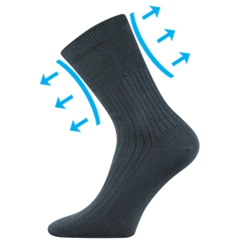 Zdravotní ponožky jsou dámské i pánské ponožky, které jsou ideální volbou pro oteklé nohy, vhodné i pro diabetiky. Vyšší ponožky z žebrovaného úpletu mají vyšší, speciální, extra volný a nestahující lem, zamezující otlakům a zaškrcení průtoku krve v končetinách. Bavlněné ponožky jsou příjemné na omak i nošení, výborně pohlcují vlhkost a perfektně sedí na noze. Bez obav je můžete nosit po celý den. Dostupné i v nadměrné velikosti.