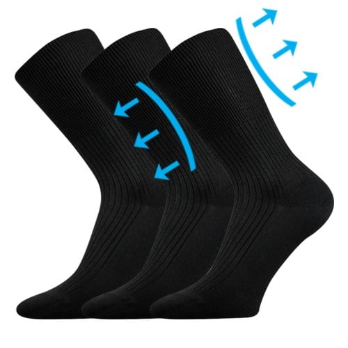 Zdravotní ponožky ZDRAVAN jsou dámské i pánské ponožky ze 100% bavlny, které jsou ideální volbou pro oteklé nohy, vhodné i pro diabetiky. Vyšší ponožky z žebrovaného úpletu mají vyšší, speciální, extra volný a nestahující lem, zamezující otlakům a zaškrcení průtoku krve v končetinách. Ponožky ze 100% bavlny neobsahují žádnou příměs, jedná se tedy o čistě přírodní materiál, proto jsou vhodné např. pro ty, kteří trpí plísněmi, ekzémy, nadměrným pocením nebo nesnesou žádná umělá vlákna. Bez obav je můžete nosit po celý den i díky řetízkované špičce, která nikde netlačí. Dostupné i v nadměrné velikosti.