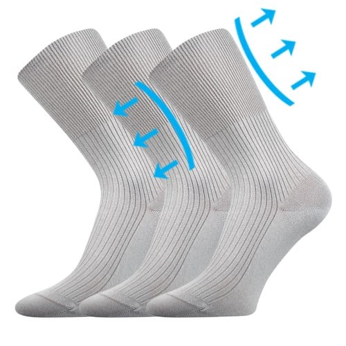 Zdravotní ponožky ZDRAVAN jsou dámské i pánské ponožky ze 100% bavlny, které jsou ideální volbou pro oteklé nohy, vhodné i pro diabetiky. Vyšší ponožky z žebrovaného úpletu mají vyšší, speciální, extra volný a nestahující lem, zamezující otlakům a zaškrcení průtoku krve v končetinách. Ponožky ze 100% bavlny neobsahují žádnou příměs, jedná se tedy o čistě přírodní materiál, proto jsou vhodné např. pro ty, kteří trpí plísněmi, ekzémy, nadměrným pocením nebo nesnesou žádná umělá vlákna. Bez obav je můžete nosit po celý den i díky řetízkované špičce, která nikde netlačí. Dostupné i v nadměrné velikosti.