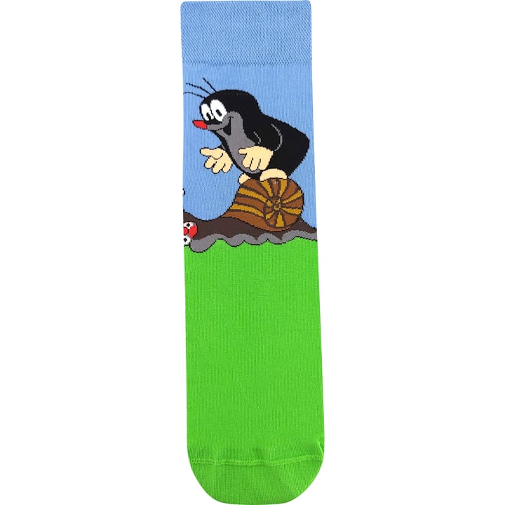 Ponožky s krtkem BOMA KR 211 jsou dámské a pánské vtipné slabé ponožky s roztomilým obrázkem Krtka od malíře Zdeňka Milera. Vraťte se do říše pohádek a pořiďte si Krtečka do svého šatníku. Klasické ponožky s vysokým podílem bavlny oživí váš outfit, ať už nosíte oblek nebo džíny. 200 jehlový úplet je velmi jemný, vypletený obrázek má díky tomu detaily velmi ostré.