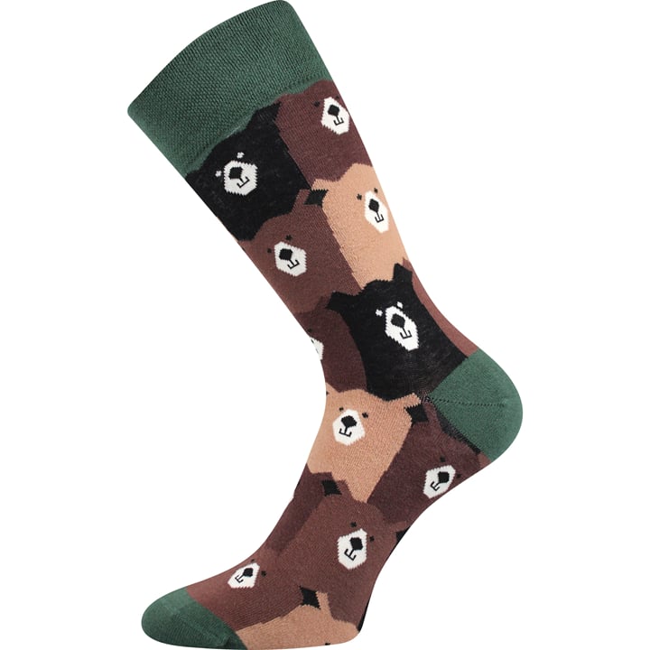 Společenské ponožky Lonka TWIDOR jsou dámské i pánské obrázkové společenské ponožky špičkové kvality. Úplet je pletený na 200 jehlových strojích, je velmi jemný a hladký, takže každý detail obrázku je ostrý. Ponožky mají špičku spojenou plochým řetízkovým švem, který vůbec necítíte a nehrozí, že ponožka bude tlačit. Ponožky mají navíc volný nestahující pique lem. Vysoce kvalitní česaná bavlněná příze s podílem elastanu dobře odvádí vlhkost, je příjemná na pokožce perfektně sedí na noze. Crazy oblekové ponožky oživí váš outfit, ať už nosíte oblek nebo džíny.