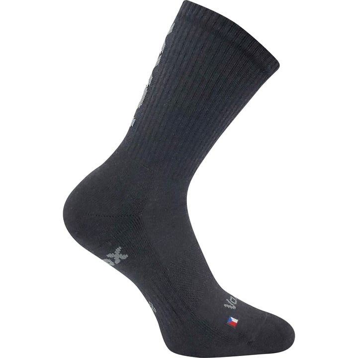 Ponožky VoXX LEGEND jsou dámské i pánské sportovní ponožky, s volným, jemným lemem, který nikde nepříjemně nestahuje ani neškrtí. Vysoký podíl bavlny je příjemný na nošení a ionty stříbra v materiálu silproX®, který zabraňuje zápachu, ochrání vaše nohy při každodenním nošení. Špice je uzavřena náročnějším řetízkováním, díky kterému je spoj dokonale hladký, zesílené polstrované zóny a froté chodidlo jsou měkké a nehrozí, že ponožka bude tlačit. Elastická zóna na nártu je zesílená a drží tak ponožky na svém místě, ponožky se tak v obuvi nepřetáčí. Dostupné i v nadměrných velikostech. Antibakteriální ponožky jsou pro každodenní použití, teplotní třída ponožek je A, vhodné do teplot v rozmezí od +10°C do +35°C. Na špici je malá vlajka České republiky.