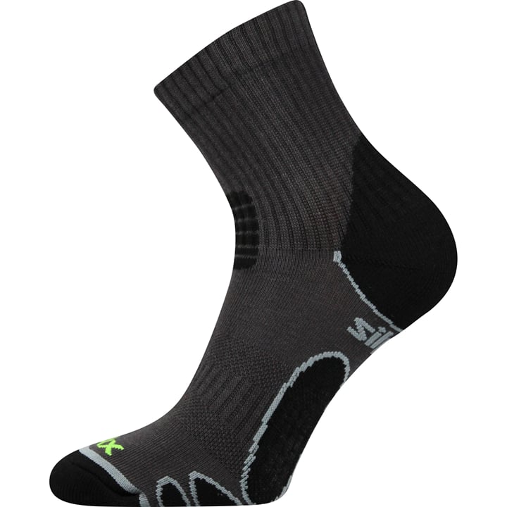 Ponožky VoXX SILO jsou dámské i pánské středně vysoké barevné ponožky určené na běh, tenis, halové sporty i celodenní nošení. Zesílené froté polstrované chodidlo zabraňuje otlakům a puchýřům, tlumí nárazy a napomáhá větší výdrži při extrémní námaze a zátěži při každodenním použití. Přírodní bavlna je příjemná na omak a dobře pohlcuje vlhkost. Antibakteriální ochranu před zápachem zajišťuje materiál silproX® s ionty stříbra. Vyšší lem je jemný a nestahující. Prodyšné ponožky VoXX® v teplotní třídě A jsou vhodné do rozmezí teplot od +10°C do +35°C.