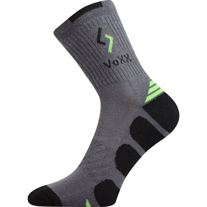 Ponožky VoXX TRONIC jsou dámské i pánské froté sportovní ponožky určené na běh, treking, tenis nebo halové sporty. Vyšší elastický lem a zóna přes nárt drží ponožky na svém místě. Zesílené polstrované froté chodidlo tlumí nárazy a napomáhá větší výdrži při extrémní námaze a zátěži při každodenním použití. Přírodní bavlna je příjemná na omak a dobře pohlcuje vlhkost. Dostupné i v nadměrné velikosti.
