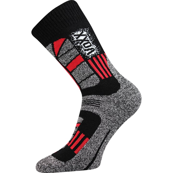 Ponožky VoXX TRACTION I jsou dámské i pánské funkční termo ponožky, jsou ideální volbou na výlety do přírody, treking nebo horskou turistiku. Silný materiál nohy udržuje neustále v pohodlí i při náročném a dlouhotrvajícím pohybu. Materiály vlna a Filactive® spojující přednosti bavlny a odolnost polypropylenu Meraklon, mají výborné termoizolační schopnosti, odvádí dobře vlhkost a odolávají opotřebení. Chodidlo je vyztužené, lem je jemný a nestahující, konstrukce dobře odvádí pot od pokožky. Froté ponožky jsou dostupné i nadměrných velikostech.