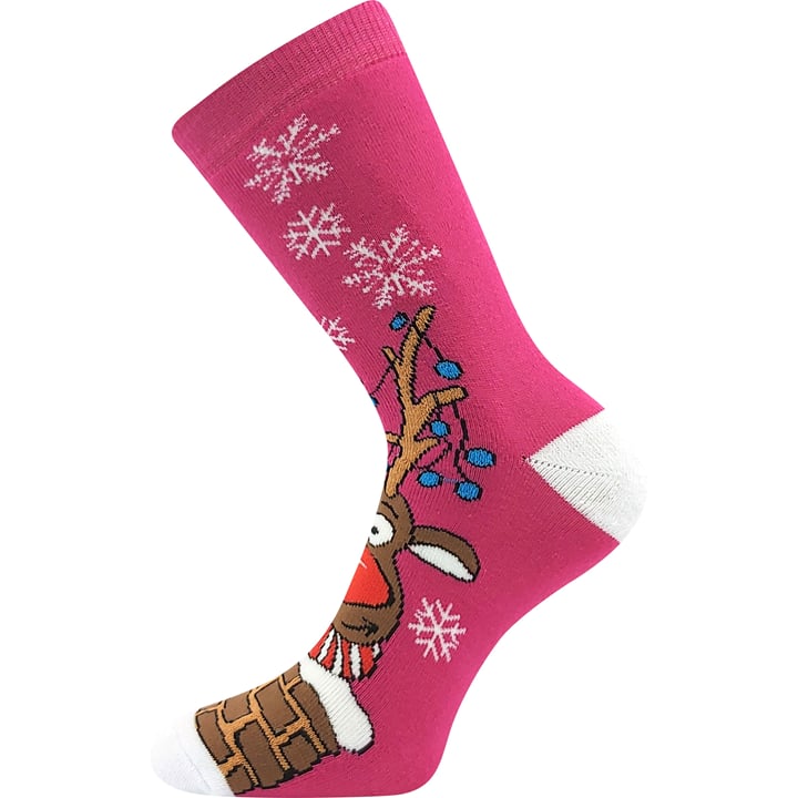 Vánoční ponožky Rudy I jsou vtipné froté ponožky s roztomilým obrázkem vánočního soba. Ponožky mají vysoký podíl bavlny a pružného elastanu. Díky tomu jsou ponožky jemné na omak, příjemné na nošení a dobře pohlcují vlhkost a zároveň dobře drží na noze. Díky měkkému froté úpletu budete mít nohy skutečně v bavlnce. Dětské, dámské a pánské ponožky jsou z příjemného teplého úpletu, vhodné na běžné nošení v chladných a sychravých dnech.