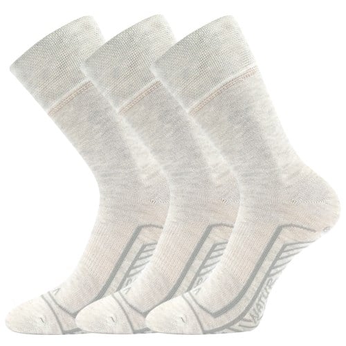 Ponožky VoXX LINEMUL jsou dámské i pánské klasické volnočasové ponožky, které užijete po celý den. Kombinace pružného elastanu, bavlny a lnu činí tyto ponožky jedinečným prvkem v naší nabídce ponožek. Odolné ponožky jsou vysoce prodyšné, řetízkovaná špice nikde netlačí a zajišťuje pohodlí a komfort při nošení, jemný lem nohu nestahuje a elastická zóna po obvodu nártu zabraňuje přetáčení ponožky v obuvi.