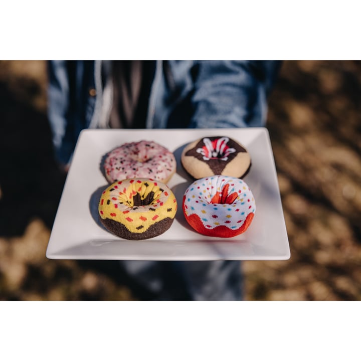 Ponožky VoXX DONUT jsou dětské, dámské i pánské slabé „trendy“ ponožky, které můžete vyndat z originální krabičky a hned si na nich pochutnat. Naše sladké ponožky mají vtipný design a místo kalorií jsou celé upletené z česané bavlny. Bavlněné ponožky výborně pohlcují vlhkost a jsou příjemné na pokožce. Řetízkovaná špice nikde netlačí, jemný len nestahuje. Zaručeně tak vykouzlí lepší náladu a úsměv na tváři. Díky jejich jedinečnému hravému designu vyjádříš svoje pravé veselé já.