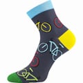 Společenské ponožky Lonka DORWIN jsou dámské i pánské módní "trendy" obrázkové ponožky ve střední výšce nad kotník. Mix motivů na slabých ponožkách oživí váš letní či prázdninový outfit. Módní ponožky jsou velmi jemné a hladké díky 200 jehlového úpletu, takže každý detail obrázku je ostrý. Řetízkovaná špice nikde na prstech netlačí a nevznikají tak otlaky nebo puchýře, vysoce kvalitní česaná bavlněná příze s podílem elastanu dobře odvádí vlhkost, je příjemná na pokožce perfektně sedí na noze. Ponožky mají navíc volný nestahující pique lem.