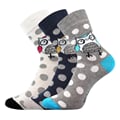 Ponožky XANTIPA 60 jsou dámské tenké ponožky s roztomilými obrázky soviček. Přírodní materiál bavlna vyniká vysokou savostí vlhkosti a je velmi příjemný na omak. Vyšší podíl bavlny je doplněný o elastan, takže ponožka je příjemná na pokožce ale zároveň je pružná a dobře si drží tvar. Lem ponožek je jemný, nohy nestahuje a neškrtí. Dostupné ve výhodném balení 3 párů v mixu barev.