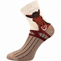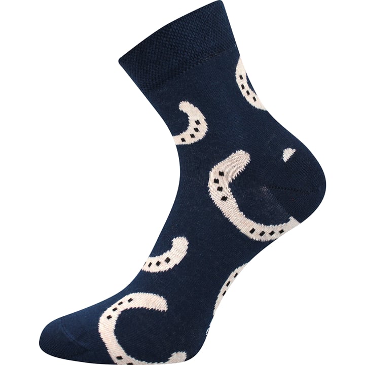 Ponožky XANTIPA 64 jsou dámské  letní ponožky pro milovnice koní. Ponožky mají vysoký podíl bavlny a pružného elastanu. Díky tomu jsou ponožky jemné na omak, příjemné na nošení a dobře pohlcují vlhkost a zároveň dobře drží na noze. Dostupné ve výhodném balení 3 párů s obrázky podkov, koně a koníků.