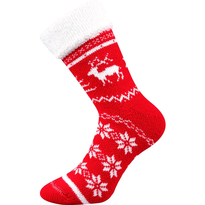 Ponožky Boma Norway jsou dámské i pánské extra silné a velmi teplé vlněné zimní ponožky. Unisex ponožky jsou z hřejivého froté úpletu s krásným norským vzorem, v nichž zima rozhodně nikomu nebude. Vyšší volný lem je možný přehnout, nosit je můžete jak natažené, tak i hravě ohrnuté. Hřejivé ponožky jsou díky vlně vhodné i na venkovní aktivity do velmi chladného počasí.