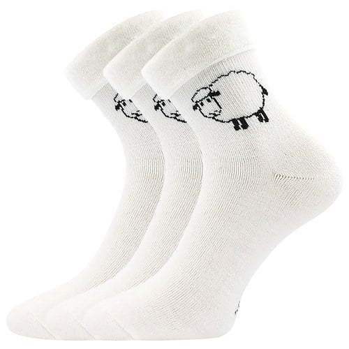 Ponožky OVEČKANA jsou dámské i pánské zimní ponožky s ovčí vlnou. Unisex ponožky jsou teplé a velice hřejivé ponožky z froté úpletu. Uvnitř jsou počesané a tím pádem příjemně hebké a měkké. Lem ponožky můžete nosit natažený nebo si ho efektně ohrnout. Tyto ponožky poskytují maximální termoizolaci i v chladném zimním počasí, vzít si je můžete i na lenošení u krbu nebo do postele, doopravdy vás zahřejí.