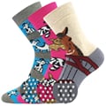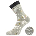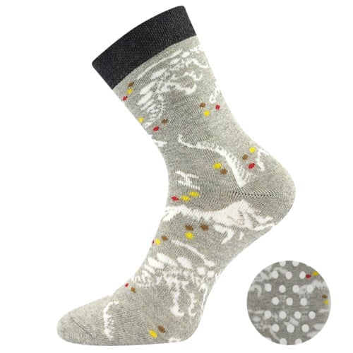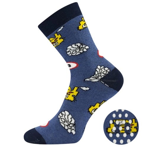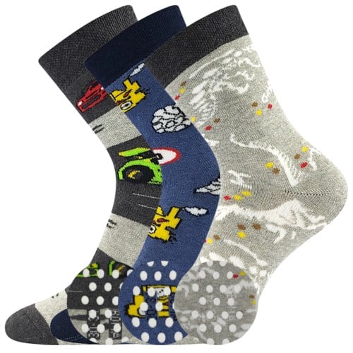 Protiskluzové ponožky SIBIŘ DĚTSKÁ ABS jsou dětské froté hřejivé ponožky s vtipnými obrázky pro kluky i holky. Velmi jemné a teplé ponožky jsou příjemné na nošení. Zesílené froté chodidlo tlumí nárazy a nohy tak máte jako v bavlnce. Díky pružnému elastanu dobře drží tvar a nepadají dolů. Bavlněné ponožky jsou hebké na omak a dokáží dobře pojmout vlhkost. Díky protiskluznému chodidlu s ABS úpravou nemusí vaše děti ani nosit bačkory. Ve výhodném balení 3 párů v barvách pro dívky i pro chlapce.