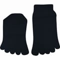 Prstové ponožky PRSTAN-A 08 jsou dámské i pánské bambusové speciální krátké ponožky, které oblékají a chrání i prsty na noze. Ponožky v černé barvě jsou díky použitému materiálu bambus přirozeně antibakteriální a antialergické. Hladké ponožky jsou lesklé, velmi jemné a příjemné na dotyk. Prstové ponožky jsou vyšší a hodí se nejen do barefootové ale i fivefingers obuvi.