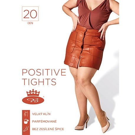 Dámské punčochové kalhoty POSITIVE TIGHTS 20 DEN jsou klasické tenké silonkové punčocháče pro každou příležitost a každodenní nošení pro korpulentní ženy a dívky. Nadměrné lycrové punčochové kalhoty POSITIVE 20 DEN skvěle padnou každé silnější postavě díky kvalitnímu úpletu s pružným elastanem. Špice a pata není zesílená, lze je nosit i v obuvi s otevřenou špičkou nebo patou. Pro maximální pohodlí mají navíc zesílený sed a velký klín. Jsou z jemného polomatného úpletu, tvarově stálé, pružné a navíc příjemně parfemované. Balené v sáčku a obálce.