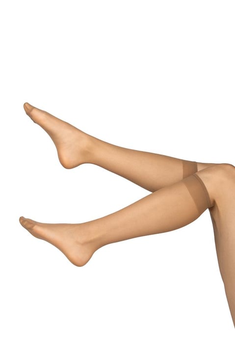 Punčochové podkolenky NYLON KNEE SOCKS jsou dámské, jemné podkolenky s velmi jemným svěrem lemu, bez paty a se zesílenou špicí. Výhodné dvou párové balení.