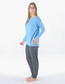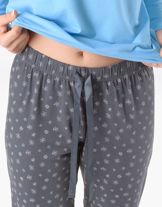 Dámské dlouhé pyžamo GINA 19179P jsou dámské dlouhé pyžamo volného střihu z jemného úpletu s bambusovou viskózou, které Vám poskytne jedinečné pohodlí během spánku. Vyzkoušejte tričko s lodičkovým výstřihem a pohodlné kalhoty s květinovým potiskem do manžety.