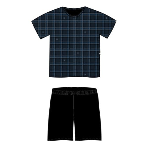 Pohodlné dvoudílné pánské pyžamo EKANS z kolekce Lonka® je kombinace trička s krátkým rukávem a pyžamových šortek. Digitálně potištěné kostkované tričko doplňují jednobarevné kraťasy ze 100% bavlny.