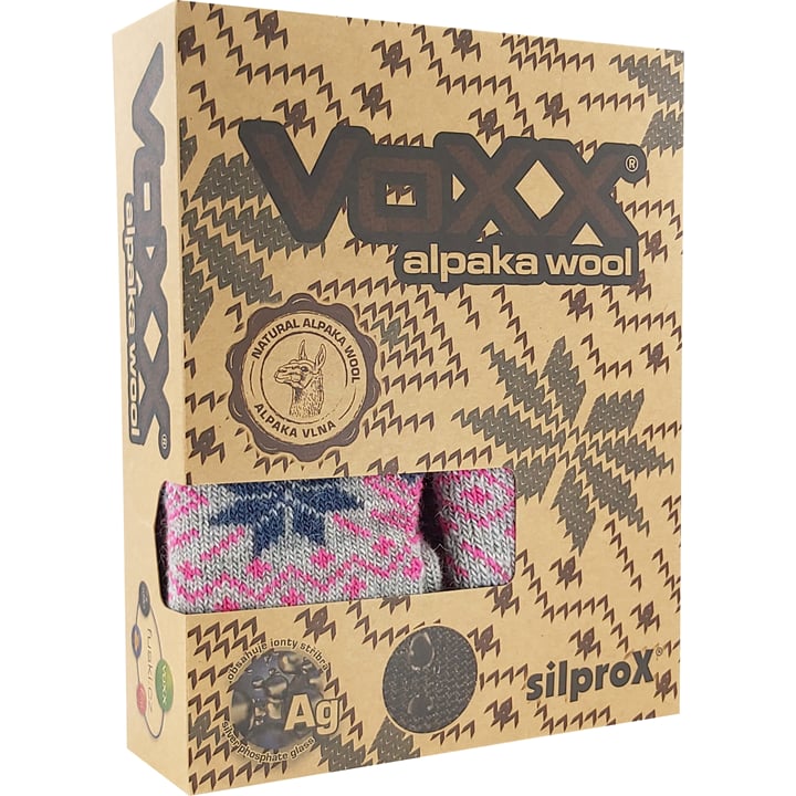 Dárková krabička ponožek a palčáků VoXX ALTA SET je sada dámských silných vlněných ponožek ponožek a pletených palčáků ve stejném designu. Vaše nohy i ruce budou jako v bavlnce díky jejich silnému froté doplněného navíc o polstrované zóny proti otlakům a puchýřům. Jemný svěr lemu nikde nohu nestahuje, vysoká prodyšnost materiálu zajišťuje komfort při nošení. Díky antibakteriální ochraně ionty stříbra nebude vznikat žádný zápach a se samotnými přírodní materiály merino vlna a vlna alpaka zažijete maximální tepelný comfort. Jsou řazené do teplotní třídy D v rozmezí -35°C až -10°C.
