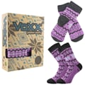 Ponožky TRONDELAG set je hřejivá sada dámských silných zimních ponožek a pletených palčáků ve stejném norském designu. TRONDELAG SET je to pravé na zimní aktivity. Vaše nohy i ruce budou v teple díky silnému froté, doplněného navíc o polstrované zóny proti otlakům a puchýřům. Jemný svěr lemu nikde nohu nestahuje, vysoká prodyšnost materiálu zajišťuje komfort při nošení. Díky přidaným iontům stříbra jsou ponožky antibakteriální, nevzniká žádný zápach. Robustní ponožky a rukavice s norským vzorem v mnoha barvách jsou řazené do teplotní třídy C v rozmezí od -20°C do +5°C.