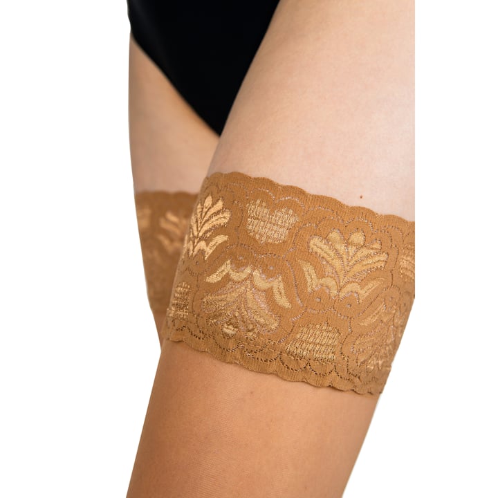 Punčochy samonosné LADY HOLD UPS jsou společenské, jemné punčochy s vysokou krajkou a dvěma silikonovými pásky. Jsou vyrobené z kvalitního úpletu a jsou parfémované.