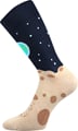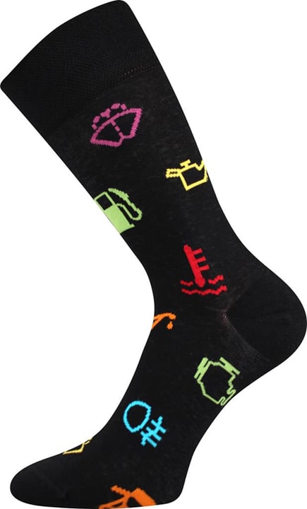 Společenské ponožky Lonka TWIDOR jsou dámské i pánské obrázkové společenské ponožky špičkové kvality. Úplet je pletený na 200 jehlových strojích, je velmi jemný a hladký, takže každý detail obrázku je ostrý. Ponožky mají špičku spojenou plochým řetízkovým švem, který vůbec necítíte a nehrozí, že ponožka bude tlačit. Ponožky mají navíc volný nestahující pique lem. Vysoce kvalitní česaná bavlněná příze s podílem elastanu dobře odvádí vlhkost, je příjemná na pokožce perfektně sedí na noze. Crazy oblekové ponožky oživí váš outfit, ať už nosíte oblek nebo džíny.
