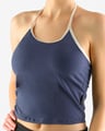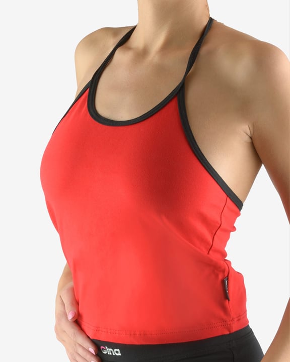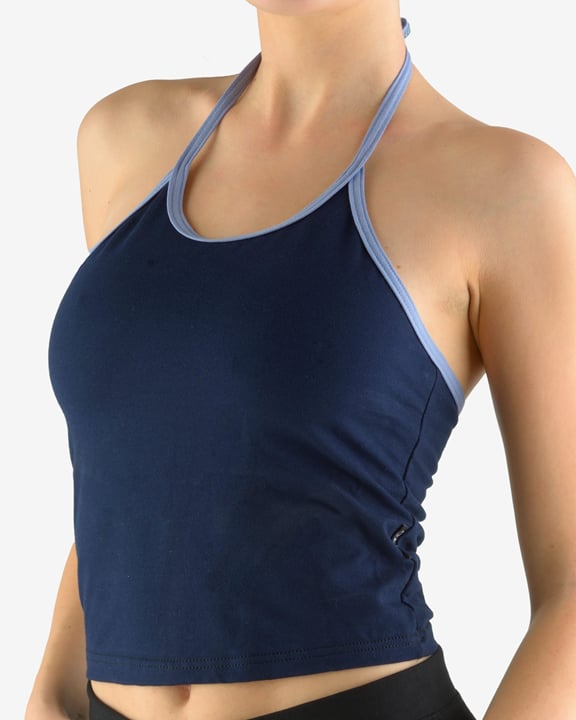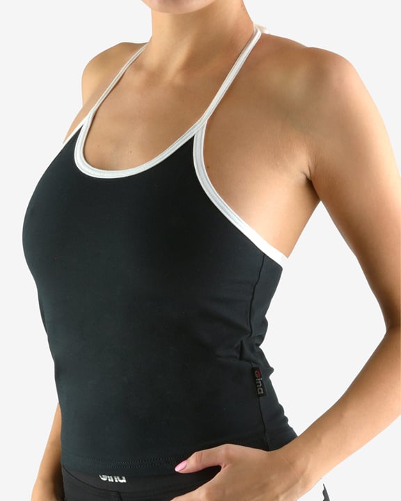 Tílko do pasu s ramínkem za krk, dámské šité sportovní prádlo. Horní kraj je zapravený lemovacími proužky, které přechází v úzké zavazovací šňůrky. Tílko je jednobarevné s kontrastním lemováním. V bočním kraji je všité logo.